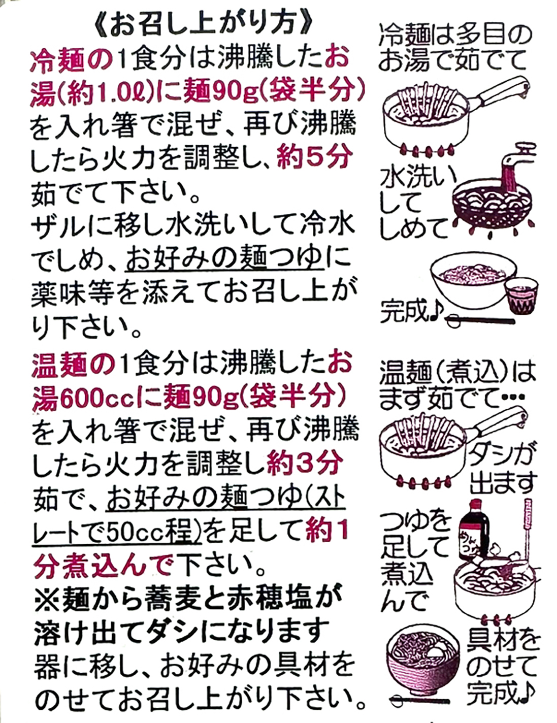 | 原材料名 | 小麦粉(小麦(熊本県産))、蕎麦粉、黒米、食塩、食用植物油(大豆を含む)、打粉(澱粉) |